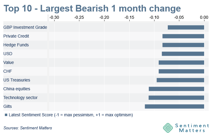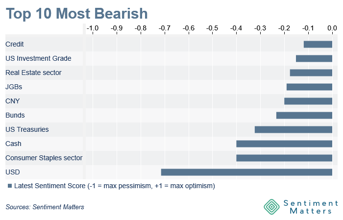 - Sovereigns: downgraded to -12% net bearish (2nd-lowest on record)