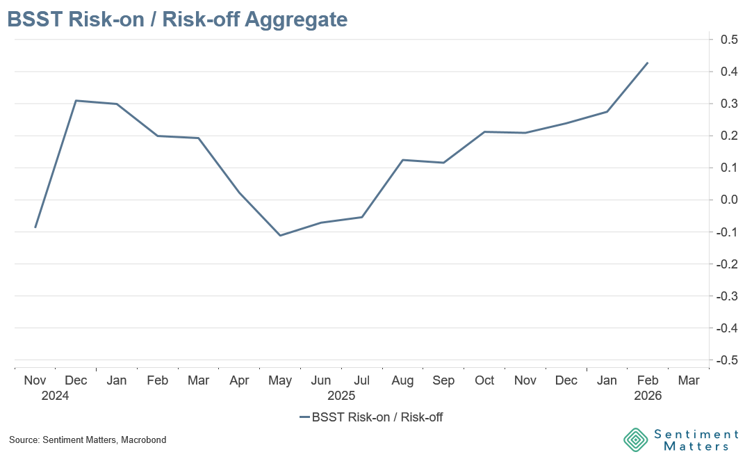 - Overall sentiment: the most bullish reading since we launched the BSST in 2024 (new high, above Dec-2024)