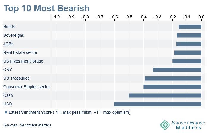 - Sovereigns: downgraded to -17% net bearish (2nd-lowest on record)
