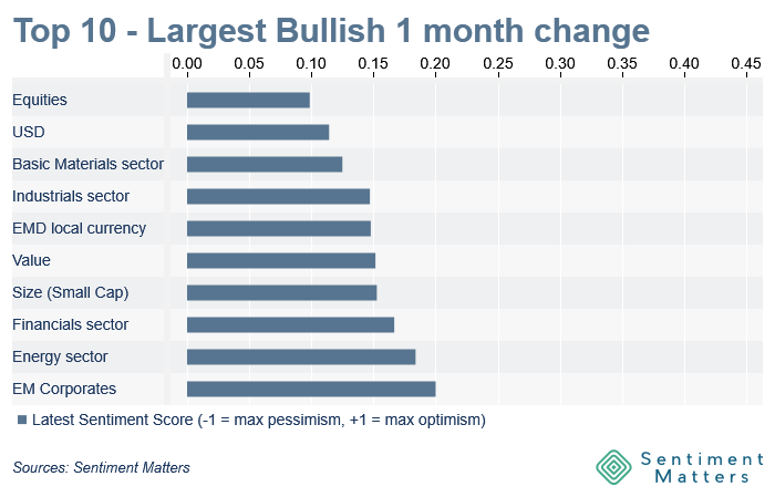 - This was a classic risk-on month: the riskiest assets upgraded — and defensiveness (cash/sovereigns) faded further.
