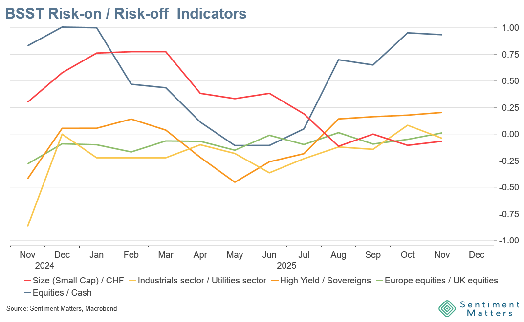 - Risk appetite was roughly unchanged across all five of our risk-on / risk-off indicators.
