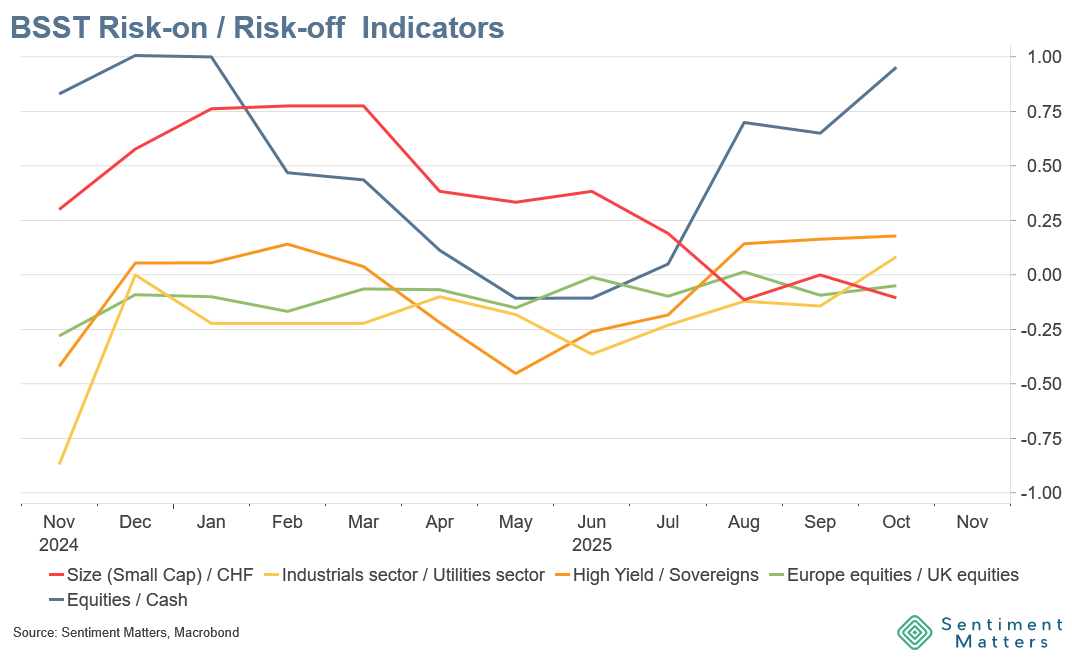 - The aggregate risk-on indicator is at its highest since February.