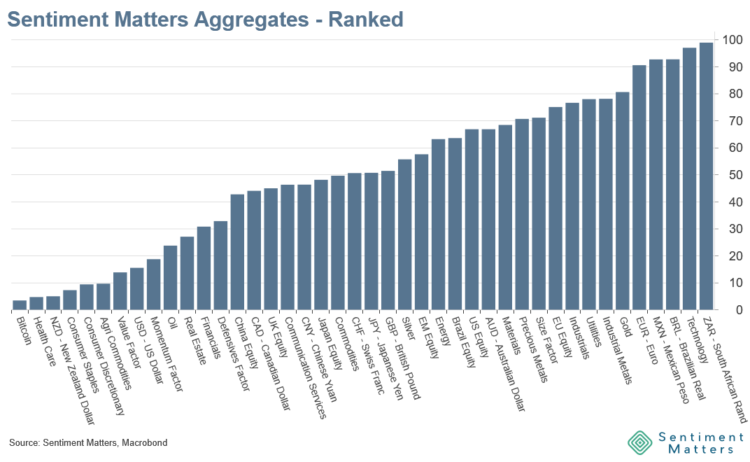 Our Sentiment Matters Aggregates combine 500+ sentiment indicators across 50+ assets, showing at a glance which assets are most loved — and which are most disliked.