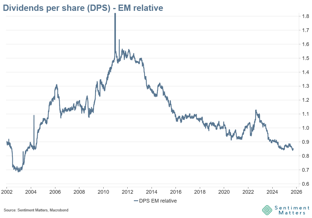 Fundamentals have not been the driver. Earnings and dividends have improved modestly, but only enough to keep pace with developed markets. That is better than the outright deterioration of previous years, but hardly an engine of outperformance.