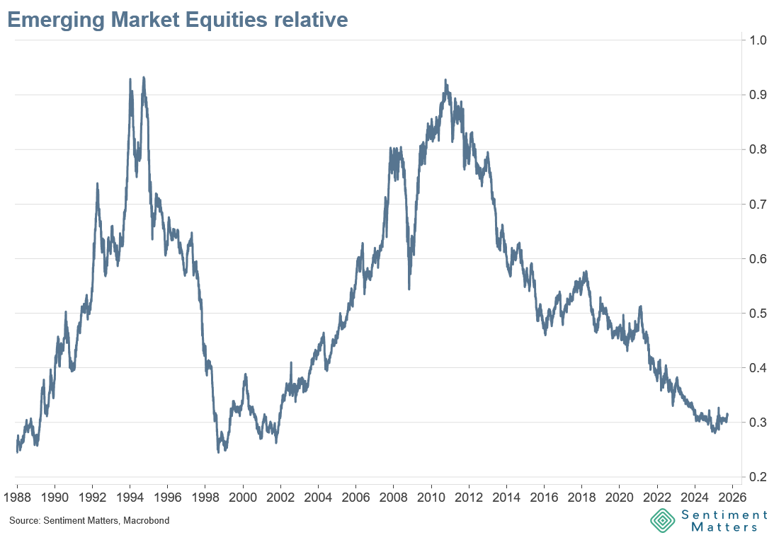 We are still very far from a true EM bull cycle, but something has shifted. Emerging Market equities are once again popular. By our measures, they are now at their most favoured in six years, matching levels last seen during the post-COVID rebound.