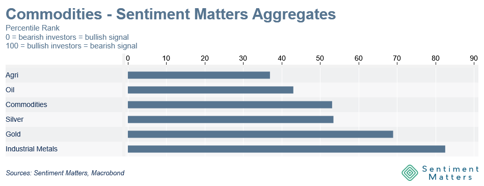 - Net bullishness: Precious Metals and Industrial Metals (especially Copper)