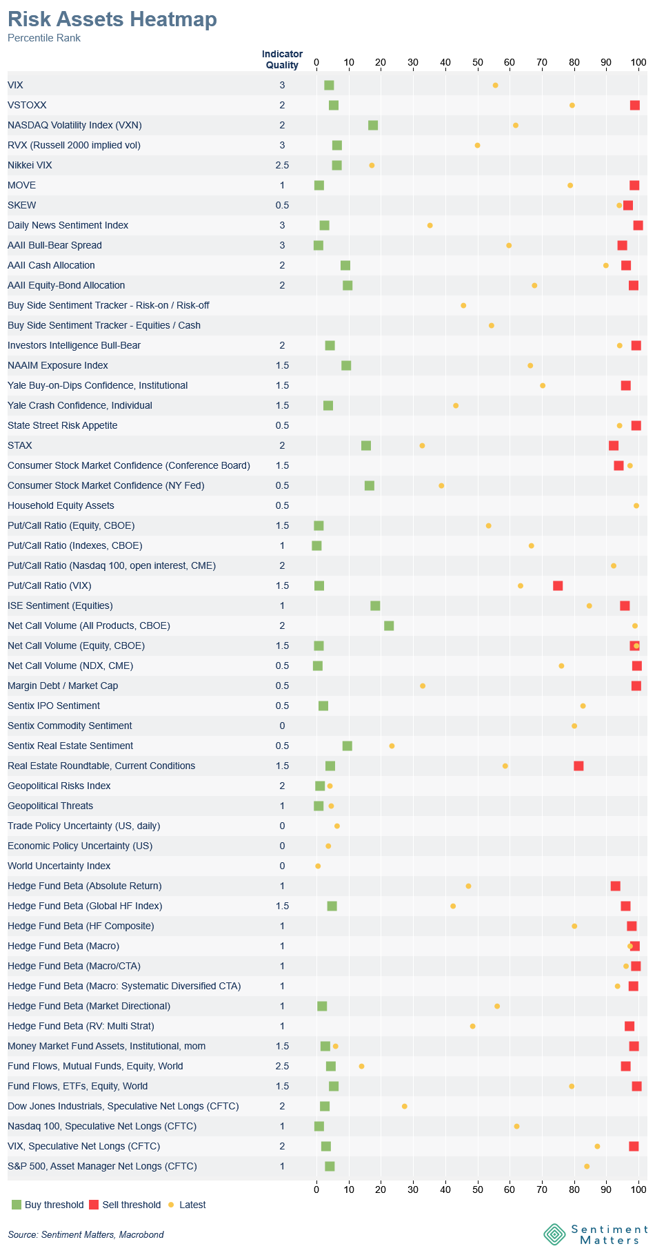 At Sentiment Matters, we use and back-test more than 400 sentiment indicators across asset classes to provide a more balanced, data-driven view of where investor sentiment truly stands.